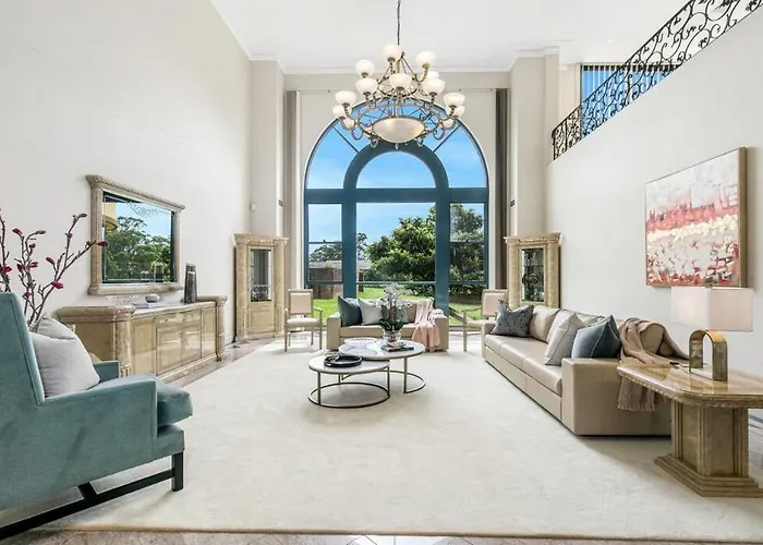 Situada a 3 km del Mirador Galson Gorge, la villa Exclusive Dural Estate Stay A Grand Luxury Escape invita a los huéspedes a relajarse en un patio.